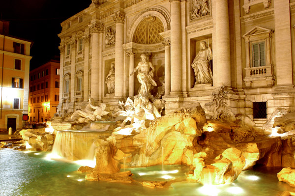 מזרקת טרווי שימשה גם כאתר ההתרחשות של אחת מהסצנות הקולנועיות המפורסמות ביותר ברומא, בסרטו של פדריקו פליני, לה דולצ'ה ויטה, כשסילביה (אניטה אקברג) משתכשכת במימי המזרקה ומזמינה את מרצ'לו (מרצ'לו מסטרויאני) להצטרף אליה. סרט חדש יותר שרבות מהסצנות בו צולמו ברומא הוא "מלאכים ושדים", על פי ספרו של דן בראון. חוקר הסמלים רוברט לנגדון מנסה לחקור את היעלמותם המסתורית של ארבעה קרדינלים תוך פענוח סמלים ורמזים שונים במקומות שונים ברחבי העיר, ובהם פיאצה דל פופולו, הפנתיאון ופיאצה נבונה.