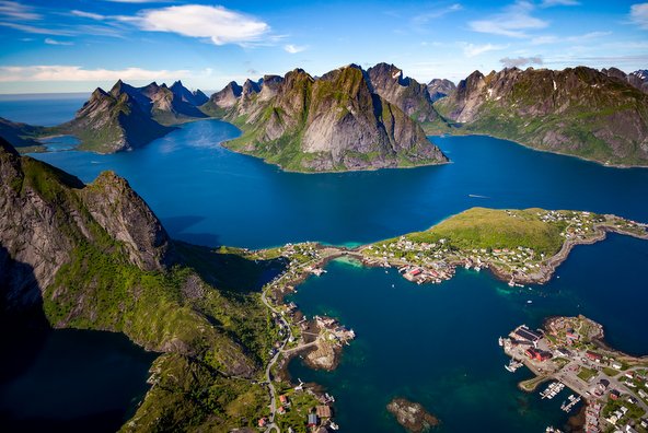 איי לופוטן קבוצת איי לופוטן (Lofoten) מונה 11 איים הרריים ומיוערים ועוד מאות איונים קטנטנים המשתרעים לאורך 190 ק"מ בצפון-מערב נורווגיה. פיורד ווסטפיורד (Vestfjord) מפריד בין האיים לבין היבשת. הנופים פה הם מהיפים ביותר שתראו בנורווגיה – הרים עם פסגות מחודדות ומושלגות, פיורדים, עמקים קרחוניים, אגמים קטנים, מפלי מים ומפרצים תכולים. נראה כי האיים הם מעין תמצית מזוקקת של כל היופי של הטבע הנורווגי.  איי לופוטן. תמצית מזוקקת של יפי הטבע הנורווגי | צילום: שאטרסטוק