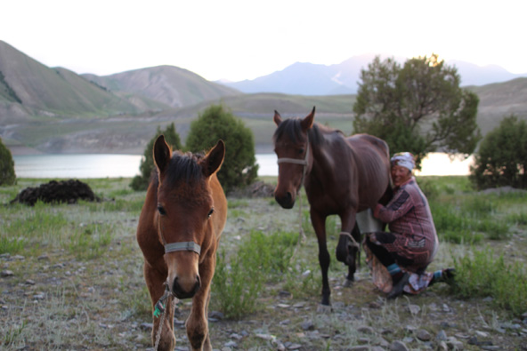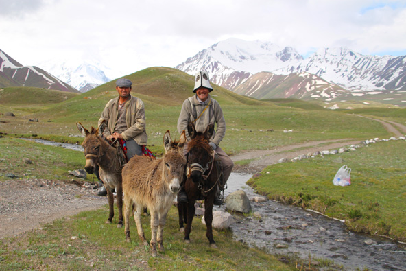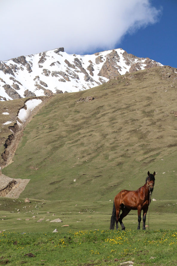 את ההלוך עשינו על גבי סוסים. זה יכול לבלבל, בלי להסס אמרתי לאיינורה, נציגת סוכנות הטיולים shepherd's life (טלפון 996777013747) שאשמח. בשביל מה הגעתי עד לפה אם לא להרגיש קצת נסיכה אבודה במחוזות קירגיזסטן. רגע אחרי שעליתי על הסוס הוא חתך בריצה לכיוון ההפוך (לבית שלו – הגיוני לגמרי). אחרי שהמדריך הגיע לנזוף בו הוא המשיך בשלו, נעצר כל עשרה מטרים בחיפוש אחר עשבים שוטים לנשנש. בינתיים שאר הסוסים דהרו קדימה, נעלמים מהעין. צריך לקחת בחשבון שלוקח זמן להתרגל לרכיבה ממושכת, פגשנו כמה מטיילים שטיילו ימים רצופים על סוסים והתחרטו על כך.