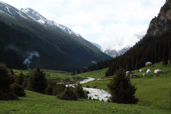 שני המסלולים המרכזיים משם הם קול אוקוק וסון קול (קול פירושו אגם בקירגיזית). אנחנו בחרנו בקול אוקוק (kyol-ukyok), פחות פופולרי אבל אינטימי יותר. בגלל שהגענו קצת מוקדם לעונה גשם תפס אותנו בדרך, אבל זאת הייתה חוויה והטבע היה בשיא הפריחה. הצבעים התחלפו לאורך הדרך.