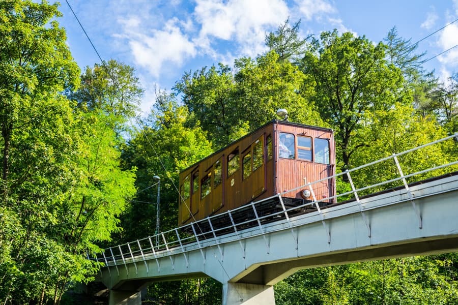 אחרי ההנאות האורבניות במרכז, הגיע הזמן לטיול הליכה בטבע שמקיף את העיר. מתחילים את המסלול בנסיעה בפניקולר שנבנה ב-1929, הראשון בעולם שהיה אוטומטי לגמרי. קרון העץ ההיסטורי מטפס במסילה הצרה מתחנת Seilbahn שבכיכר Südheimer Platz אל לב היער, גבוה מעל העיר.