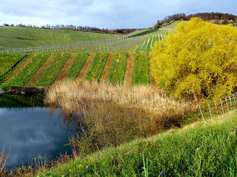 תומאס דיהל, דור שלישי למשפחת ייננים, מוזג לנו יין סמוק ומבעבע מענבי פינו נואר, שרוקד על הלשון והולך מצוין עם לחם מחמצת נפלא ממאפייה מקומית. אבל עוד יותר מהיין והלחם, הראש מסתחרר מהנוף שמחוץ לחדר הטעימות של היקב: כמו בגלויית נוף כרמים גולשים במורד הגבעות, ביניהם מאגר מים קטן, פרחי בר ועצים בפריחה אביבית מוסיפים כתמי צבע לירוק הרענן. למטה, בעמק מתחתנו, בתיה של שטוטגרט כמו לבני לגו לבנות עם גגות אדומים. "הגרמנים שותים במומצע 20 ליטר של יין בשנה", אומרת אליבזת, "אנחנו בשטוטגרט שותים כמות כפולה".