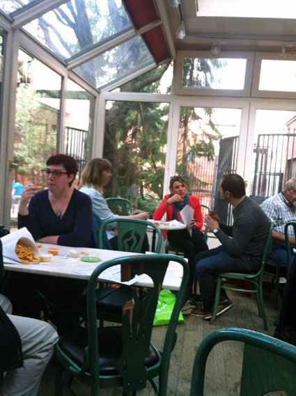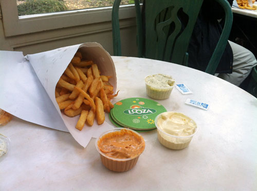 בדומה לוויכוח התמידי אצלנו על החומוס הכי טוב – זה אומר אבו חסן ביפו, האחר יגיד סעיד בעכו ויש מי שנשבע אמונים לבהדונס ברמת גן – כך בבריסל מתווכחים על הצ'יפס הכי טוב. ולפני שתעקמו את האף, כדאי לדעת שהבלגים גאים להפליא בצ'יפס שלהם, שנעשה מתפוחי אדמה מסוימים, הנחתכים בדרך ספציפית ומטוגנים באופן מיוחד כדי להגיע לפריכות המדויקת של המעטפת החיצונית ולרכות המושלמת בתוך הטוגן. מנת צ'יפס אותנטית, כזאת המוגשת בתוך נייר מגולגל לקונוס, גדולה כל כך עד שתתקשו לסיים את כולה. "לא כמו ההולנדים, שבמנה שלהם יש אולי עשר חתיכות", צוחק תושב מקומי למראה המבט המשתאה שלי. את הטוגנים הבלגים אוכלים בלוויית רטבים – מיונז כמובן, אבל גם רטבים אחרים המבוססים על מיונז. רק אל תבקשו קטשופ, יש דברים שפשוט אסור לעשותם, גם אם אתם לא מבינים למה… אז איפה מגישים את הצ'יפס הכי טעים בבריסל? אל הוויכוח הזה איננו מעיזים להיגרר, אבל אם התור המשתרך בשעת צהרים מול הצ'יפסרייה (תרגום חופשי ל- Friterie כפי שקוראים לזה כאן) של אנטואן, Maison Antoine, מעיד על הטיב – הרי שיש לנו מנצח. שני אירו וחצי יעלה לכם קונוס ענק של צ'יפס עם כמה רטבים בצד, ואפילו לא תצטרכו לאכול בעמידה: בכל אחד מבתי הקפה שבכיכר ג'ורדן, שם ממוקם היכל הצ'יפס, אפשר להיכנס עם הקונוס שלכם (לשם ביטחון, בדקו אם בחלון מופיע השלט עם השם Antoine וציור של צ'יפס). אתם מביאים את הצ'יפס, בית הקפה מספק את המשקאות וכולם שמחים, מרוצים ומשומני אצבעות.