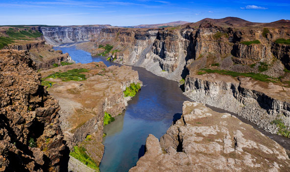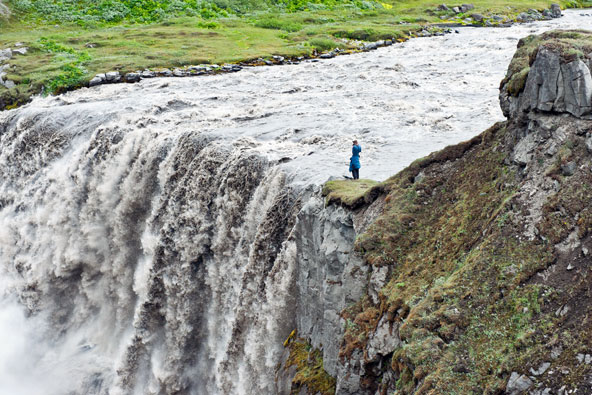 לגעת באיתני הטבע מפלים בעוצמות ובגבהים שונים פזורים בכל רחבי האי, אך אחת מגולות הכותרת של ביקור באיסלנד היא הליכה רגלית לאורך מפלי דטיפוס (Dettifoss). זוהי סדרת מפלים גבוהים ועוצמתיים על נהר הקרחונים הצפוני (Jokulsa a' Fjollum), נהר המנקז את כיפת הקרח הגדולה וטנה-יוקול לאוקיינוס הארקטי. שביל הליכה מוכה רסס מים לבנים מזגזג בין המפלים המכונים בפי האיסלנדים "מפלי הניאגרה של אירופה". באופן מפתיע, לעומת ספיקות המים האדירות הבוקעות מכיפות הקרח, חלקים ניכרים מאיסלנד הם מדבר. אזור ההיילנד שבמרכז האי נחשב בחלקו הצפוני-מזרחי למדבר ארקטי צחיח, עם תופעות וולקניות וגיאולוגיות ייחודיות ומרשימות.