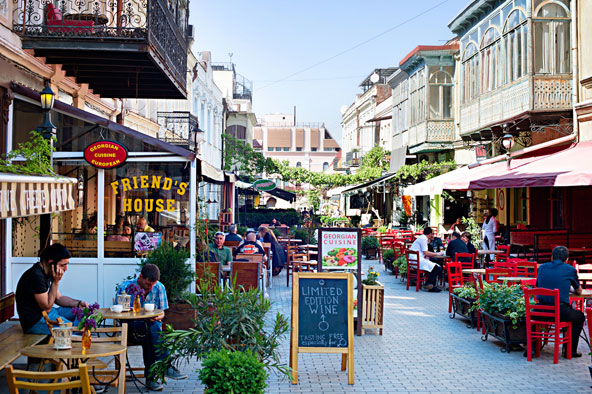 העיר העתיקה של טביליסי היא מבוך של סמטאות צרות עם מבני עץ שמרפסותיהם מחוברות, כך שהשכנים יכולים להיכנס זה למרפסת של רעהו, עדות טובה להכנסת האורחים הגאורגית. אחד הרחובות התוססים ביותר הוא רחוב שרדני (Shardeni), הגדוש בבתי קפה, ברים, מסעדות, מועדוני לילה וגלריות.