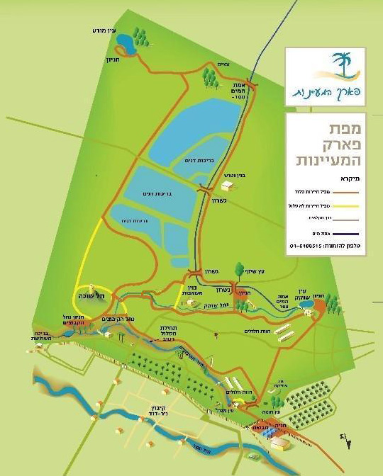 מהתל ניתן לרדת חזרה לנחל הקיבוצים ולסיים ברכב שחיכה בנאמנות. מיטיבי הלכת שעוד נותר ברגליהם הכוח מוזמנים לרדת מהתל ולנוע דרומה אל עבר עין מודע (הליכה של כחצי שעה). כאן, בינות לאיקליפטוסים עבי גזע, נחבאת בריכה נפלאה עם מים זכים, מהיפות שבעמק. המקום עבר פיתוח והנגשה לנכים ויש בו ספסלי פיקניק. הליכה של 400 מטר תביא אותנו אל מעבר למחסום הרכב ואל חניון המכוניות – שם יסתיים טיולנו. מידע מעשי כמה עולה? הכניסה להולכי רגל ולרוכבי אופניים היא ללא תשלום. גם החניה בחינם. אם לא הבאתם אופניים מהבית, אפשר לשכור אופניים בכניסה לפארק; אופציה נוספת למי שמתקשה ללכת היא לשכור רכב חשמלי. פרטים נוספים: טלפון: 04-6881427, אתר האינטרנרט. מה עוד בסביבה? מפת פארק המעיינות (לחצו עליה להגדלה):