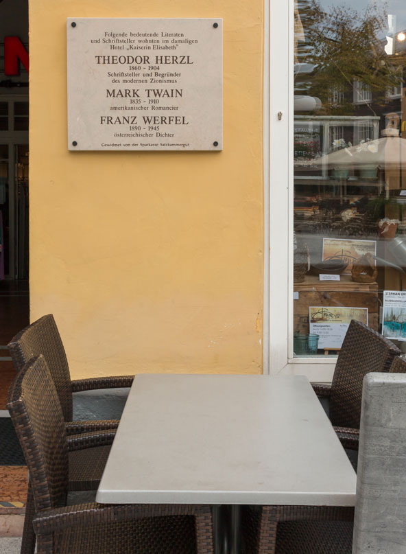 אחרי ארבע שעות וכמה מאות תמונות הבנתי שכדאי להתחיל את הנסיעה חזרה לווינה. הנוף ליווה אותי בנסיעה וגרם לי לחשוב על הרצל שלנו (שנולד אמנם בבודפשט, אבל נפטר בווינה) – מה גרם לו לרצות לוותר על הנוף הקסום הזה לטובת המדבר הצחיח? עצירת צהריים בעיירת הספא המפורסמת באד אישל (Bad Ischl) נתנה לי תשובה חלקית, כשמחוץ לאחת המסעדות במרכז העיירה התנוסס שלט גדול שבישר על כך שבמקום ביקר האדון תאודור הרצל (לצד מרק טוין וידוענים נוספים)… מסתבר שהרוח צריכה חומר, וכך גם חוזה מדינת היהודית שלנו מצא לו מדי פעם אוורור אלפיני, ואחריו חזר למשרד עד הפעם הבאה… בדיוק כמונו.