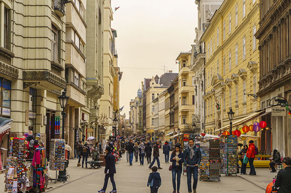 מהשוק לכיוון צפון נחצה את הכביש ונכנס אל רחוב ואצי (Váci utca), מדרחוב שופע התרחשויות ומקומות לאכול בהם, תיירים רבים משוטטים ואוכלים כאן והמסעדות מתהדרות בשלטים מאירי עיניים ותצלומים של המנות. אין צורך להתלהב, הפופולריות של הרחוב בקרב תיירים הפכה אותו למלכודת תיירים קלאסית – אפשר למצוא בו מסעדות הונגריות רבות המציעות את המנות הקלאסיות המקומיות, אבל המחירים יהיו גבוהים באופן יחסי והאיכות לא תמיד משביעת רצון.