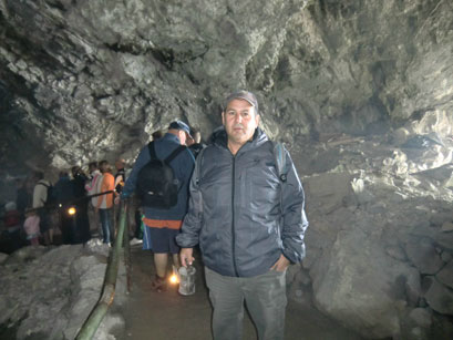 מכאן מתחיל עוד טיפוס, לאט לאט אנחנו הולכים בשיפוע החד. זוג ישראלים שאנחנו פוגשים נמצאים בשלב הירידה והם "מעודדים" אותנו: לא נורא, יש עוד קצת הליכה, ואחר כך, במערה – 1,600 מדרגות. לסיום הם מוסיפים: "דרך אגב, הבאתם מעילים חמים? במערה קור אימים". אנחנו ממשיכים בטיפוס עד למערה, ושם, בכניסה, מסדירים את הנשימה ומצטרפים לשאר המטיילים שיושבים ואוכלים סנדוויצ'ים שהביאו איתם. לבושים במעילים אנחנו נכנסים למערה, לא לפני שווידאנו שאפשר לצאת באמצע הסיור. קיבלנו פנס שדולק על סוג של חומר בעירה שלא יוצר חום – המערה עצמה חשוכה לגמרי, אין בה כל מקור אור ואסור לצלם. רוח קרה מקבלת את פנינו בכניסה למערה ומכבה כמעט את כל הפנסים של המטיילים. בפנים מדריך מדליק אותם מחדש ומתחיל בהסברים בגרמנית, ואז מסתבר שצירפו אותנו לסיור שכולו בגרמנית… אנחנו מתחילים לטפס במערה והמדריך מדליק זיקוק שמאיר את עמודי הקרח בצורה מדהימה בצבע כחול זוהר. אחרי קטע הליכה, לפני תחילת המדרגות, אנחנו פונים אחורה ויוצאים דרך המערה המוארת מהפנסים והזיקוקים של המדריכים. שוב מעבר דרך הרוח הקרה ויציאה לשמש. מסונוורים מהאור והקור אנחנו יושבים להפשיר, ואז מתחיל המסע של כל הדרך למטה, כשאצבעות הרגליים נדחקות לקצה הנעל. בדרך אנחנו פוגשים כמה משפחות של ישראלים, שמטפסות מעלה ומיד גם אנחנו "מעודדים" אותם בסיפורים על הדרך המצפה להם והקור במערה. אנחנו מגיעים לתחנת הביניים לבית קפה ומסעדה (ארוחה מלאה לא יקרה, 15 אירו לאדם, אבל מי יכול לאכול אחרי ההליכה הזאת, חוץ מהאוסטרים?). בסופה של הירידה המהירה ברכבל אנחנו יורדים ברגל באותו השביל שבו טיפסנו, עד למבנה הכניסה המרכזי, משם ממשיכים לרדת עד לקרוואן. בשלב הזה הגוף מותש לגמרי, אז אנחנו נוסעים למרכז קניות כדי להתאושש.