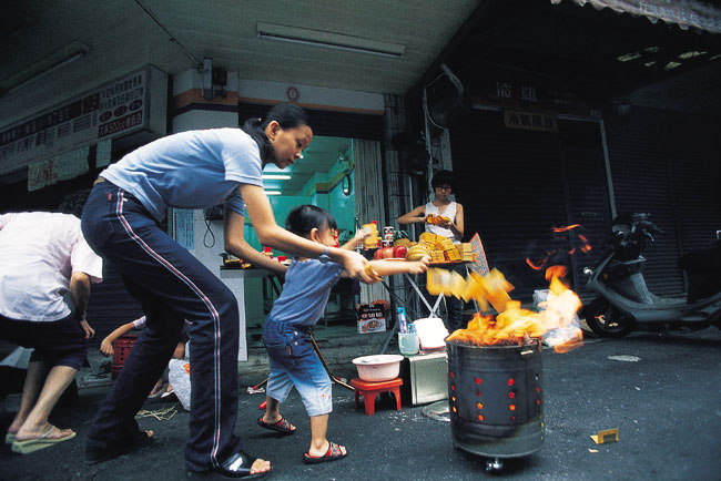 חודש שלם, דומה שטייוואן אחוזת חרדה: מיליוני נשמות אבודות מבקרות בארץ – אוכלות, חוגגות ומקבלות תשלום. "חודש הרוחות" שנערך בטייוואן (ראו "מסע אחר" 76), כמו גם ביתר אזורי התרבות הסינית, משלב אמונות בודהיסטיות, קונפוציאניות וטאואיסטיות. בתחילת החודש, השביעי בלוח השנה הסיני, נערכים טקסים ברחבי המדינה. ביקרתי באחד הפופולריים שבהם, במקדש קטן בקילונג (Keelong), עיר בצפון טייוואן.