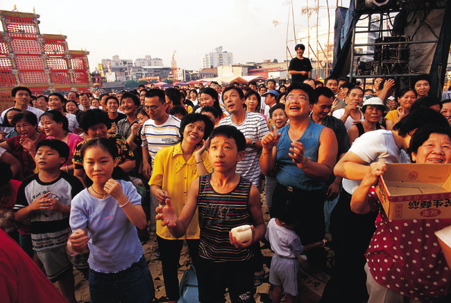 וברעש שהוא מייצר. ואכן, סביב חוללו רקדנים, שביצעו תרגילי אקרובטיקה מורכבים, בצד להקות מתופפים, אופרה מסורתית ובמות לקריוקי על רקע חזיזים.