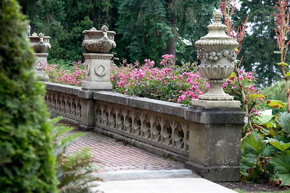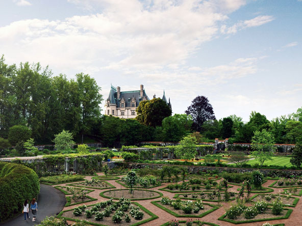 אחוזת בילטמור מוקפת בגנים נרחבים, חלקם מעוצבים למשעי, אחרים הושארו במצבם הטבעי