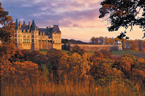 הבנייה הסתיימה ב-1891, אבל סוויט לא זכה ליהנות ממנה – הוא מת עוד בטרם הטירה הושלמה. רוז עברה לגור בטירה המפוארת ונהגה לערוך בה מסיבות סוערות שנמשכו עד אור הבוקר ואליהן הגיעו כל המי ומי מוושינגטון, לעיתים ברכבת שבעלת הבית שכרה במיוחד לשם כך. כדי להנעים את זמנם של האורחים, היא נהגה להביא תזמורות ושירותי קטרינג משובחים, ורבים מהאורחים האריכו את שהותם בביתה לתקופות ממושכות. כשהגיעה לגיל 50, רוז הצליחה לבזבז את כל ירושת בעלה, והיא נאלצה למכור את הטירה ולעבור להתגורר בבית קטן, שבחצרו גידלה תרנגולות. מאז עברו על הטירה תהפוכות רבות, והיה זמן שהיא שימשה כמחנה קיץ לנערים. לפני שנים אחדות היא נמכרה לאדם פרטי, ששיפץ אותה והחזירה לימי הזוהר של רוז סוויט, כולל ריהוט תקופתי. כיום הטירה אינה פתוחה לקהל הרחב, אולם אפשר לשכור אותה לאירועים פרטיים ולחתונות. אתר אינטרנט. אחוזת בילטמור (Biltmore Estate), קרולינה הצפונית אחוזת בילטמור היא בית המגורים הפרטי הגדול ביותר בארצות הברית, עם לא פחות מ-250 חדרים וסגנון שמדמה את הטירות של עמק הלואר בצרפת. בשונה מהטירות האחרות המוזכרות כאן, הבילטמור נמצאת, מאז נבנתה ב-1889, בבעלות אותה משפחה. אולי אין זה פלא שהאחוזה העצומה הזאת לא החליפה ידיים, שכן היא שייכת למשפחת ואנדרבילט, אחת המשפחות העשירות בארצות הברית. מעניין לציין, שכאשר ג'ורג' וושינגטון ואנדרבילט (שום קשר דם לנשיא הראשון של ארצות הברית) בנה את אחוזת בילטמור כבית הקיץ שלו, הוא בחר במתכוון באשוויל שבקרולינה הצפונית כדי לשמור על צניעות ולהרחיק את עצמו מאחיו ואחיותיו שבנו לעצמם בתי קיץ מפוארים באתרי נופש נוצצים באזור ניו יורק.  אחוזת בילטמור. צניעות זה עניין יחסי צניעות זה עניין יחסי, כך נראה, שכן האחוזה כוללת, מלבד טירת המגורים, גם גנים נרחבים, שעוצבו על ידי מעצב הגנים הנודע אולמסטד (שעיצב את סנטרל פארק בניו יורק), יער טבעי, כנסייה ואפילו כפר קטן, שבו התגוררו עובדי המשק. ואנדרבילט עצמו יצא למסעות ברחבי העולם כדי לאסוף רהיטים, שטיחים ועבודות אמנות לאחוזתו. בין אורחי אחוזת בילטמור היו לא רק בני משפחה וחברים אלא גם סופרים, דוגמת הנרי ג'יימס ואדית וורטון, ונשיאים אמריקאים, בהם וויליאם מקינלי וטדי רוזוולט. בתקופת מלחמת העולם השנייה עשרות ציורים ופסלים הוצאו מהגלריה הלאומית בוושינגטון והוחבאו באחוזה מחשש שיפגעו אם בירת ארצות הברית תותקף.