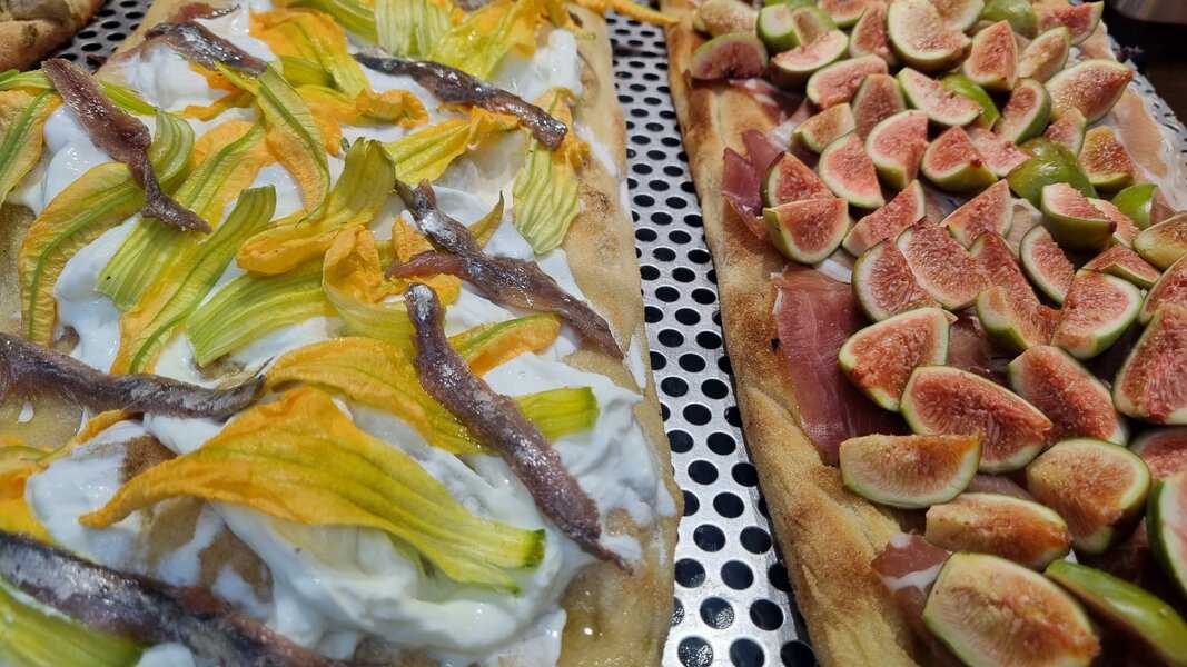 חבל לפסוח על דוכן CASA MANCO (22BOX) בו חותכים על המשקל פוקצ'ות דקיקות עם טופ משוגע מפרושוטו ועד פרחי קישואים עם דגים.
