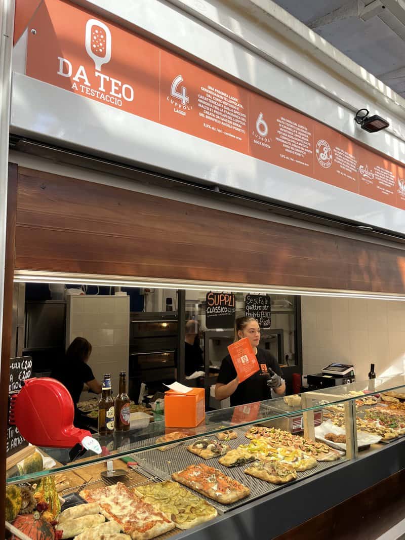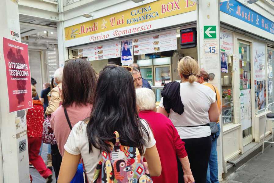 הדוכנים בשוק מייצגים את אוכל הרחוב שהתפתח ברומא.