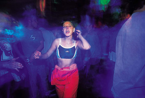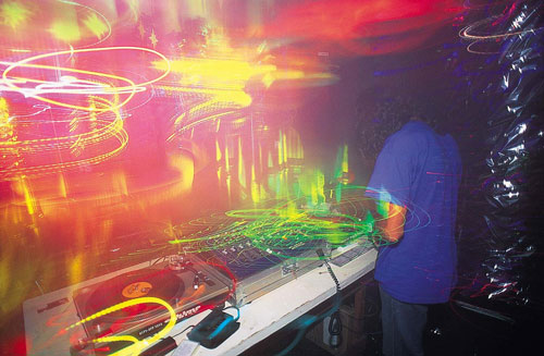 | מסיבת טראנס במועדון לונדוני. המוסיקה, האורות, הצבעים והסמלים של תרבות שנות התשעים |