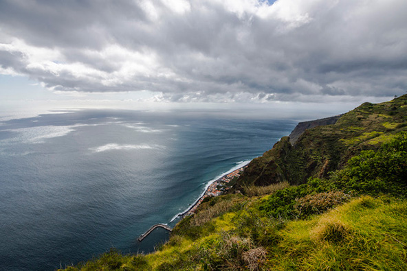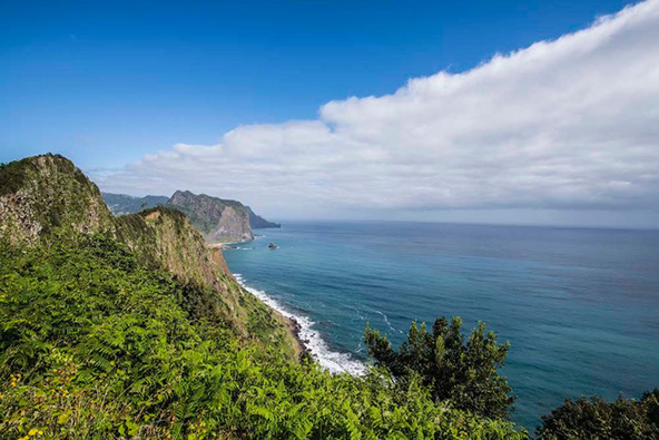 תצפית על קו החוף של מדיירה והאוקיינוס הכחול. הכי כחול שאפשר לדמיין
