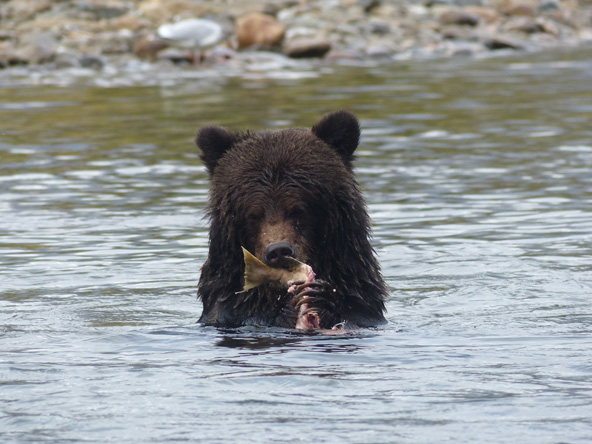 ארוחה בנהר: דב אוכל דג סלמון שצד זה עתה