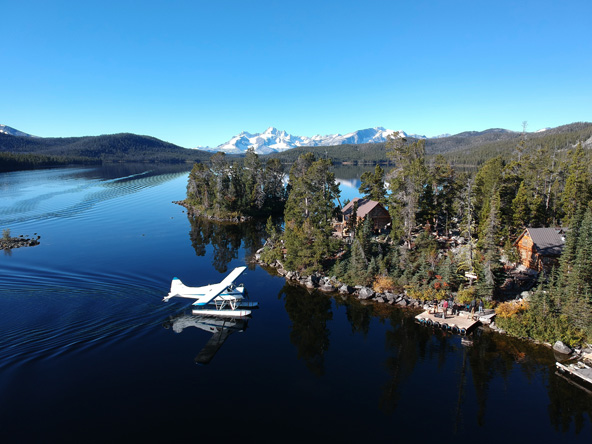 מטוס ים נוחת על האגם. זוהי הדרך היחידה להגיע לנוק טסלי