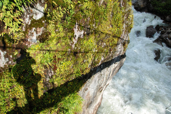 צל של גשר תלוי מעל הנהר בדרך ללמה הוטל