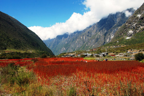 שדה כוסמת ביציאה מהכפר לנגטאנג לכיוון קאנג'ין גומפה