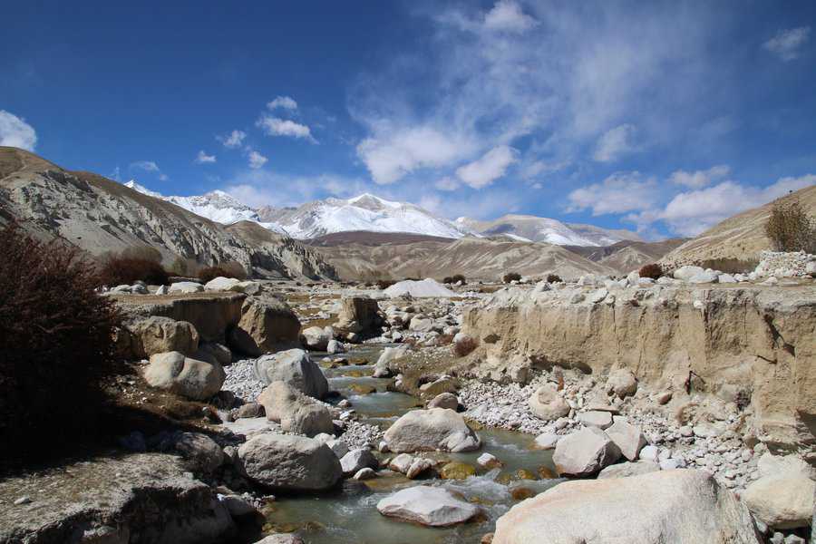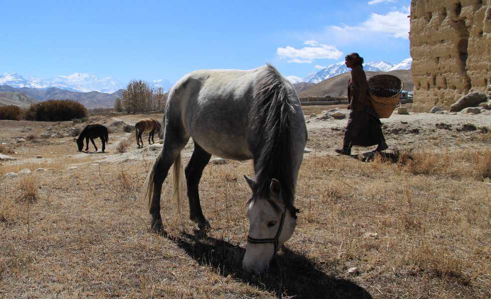 המשכנו לכיוון צ'ארנג (Chrang/Tsarang). הסוליות של הנעליים, סימן ההיכר לדרכים בנפאל, מלוות אותנו לכל אורך הטרק. אנחנו נתקלים לעיתים בסוסים משוטטים ועדרים של באפלו. אחרי שאנחנו עוברים את הכפר גאמי, נותרות עוד בערך 5 שעות של הליכה עד לצ'ארנג. הרוחות מתחילות להתחזק ואני נזכרת בשריקותיהן של נשות הכפר, מאשימה אותן בהזמנתן. לאורך הכפרים ניתן לראות לעיתים נזירים טיבטים עם שמלות אדומות על הגגות ונשים בשמלות הטיבטיות המסורתיות. לא פגשתי קודם עם פטריוטי ואצילי כמו העם הטיבטי שההיסטוריה היא חלק כל כך יומיומי מהווייתו.