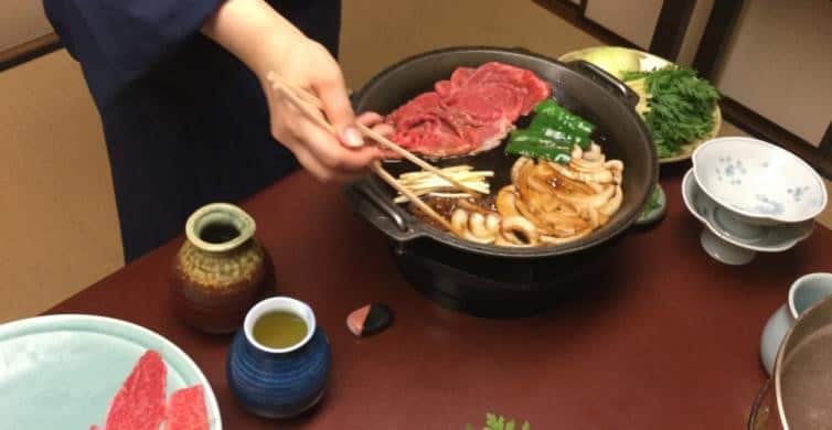 צורת בישול שהתפתחה במחצית השנייה של המאה ה-19. כמו בשאבו-שאבו, מבשלים על השולחן בקדרה, אבל נמוכה. בקדרה מים מתובלים, שמבשלים בהם נתחי בשר דקים, טופו, פטריות, ירקות ואטריות דקיקות. נהוג לטבול את הבשר ושאר הפריטים המבושלים בביצה טרופה ואחר כך ברוטב.