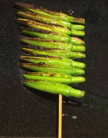 המנה השנייה היא misaki, זנב תרנגול. מפתיע מאוד מבחינת המרקם והטעם. עברנו לקאשיווה (kashiwa), בשר תרנגול זקן, ואחריו האטסו (hatsu), לבבות – חלק מכל מעורב ירושלמי תקני. אחרי הלב, סחוס ברך מרחיק אותנו ממחנה יהודה.