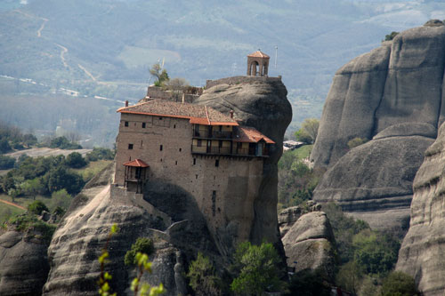 מנזר תלוי בראשו של עמוד סלע במטאורה אחד האתרים המיוחדים ביותר ביוון ההררית הוא המנזרים התלויים של מטאורה. את המנזרים, שנמצאים בראשי עמודי סלע תלולים, הקימו בימי הביניים נזירים אשר חיפשו מקום שקט להתבודדות. בעבר הגישה היחידה אליהם היתה בסולמות ארוכים או דרך סלים מוחברים לחבלים. כיום הגישה למנזרים קלה יותר, אבל הם עדיין שומרים על אופיים הייחודי.