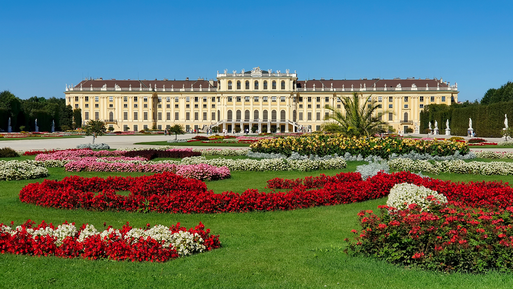 בעיני רבים, הגנים המרהיבים שמקיפים את הארמון הם גולת הכותרת של הביקור במקום. אמנם תעברו דרך הגנים גם בדרככם לגן החיות ובדרך מגן החיות לארמון, אך כדאי להעמיק את הסיור בהם בתום הביקור בארמון ובמוזיאון משום שהם נסגרים מאוחר יותר, מה שיאפשר לכם למצות את היום באופן יעיל יותר. בגנים תיהנו מערוגות פרחים מטופחות, גינון סימטרי, פינות תצפית ומזרקות ובהן מזרקת נפטון המרהיבה שמתארת סצנה מהמיתולוגיה היוונית. ממזרקת נפטון מטפס שביל תלול אל הגלורייט (Gloriette) מבנה מרשים הניצב בראש גבעה ומציע תצפית נהדרת על הארמון, על הגנים ועל העיר. הכניסה לגלורייט היא בתשלום נוסף. גנים נוספים במתחם הם הגן היפני המקסים, הסמוך לכניסה הראשית לגן החיות, גן הוורדים וכן כמה גנים שהכניסה אליהם היא בתשלום נוסף, ובהם גן פריבי (Privy), גן עצי הפרי (Orangery) ובית הדקלים (Palmenhaus) שהוא למעשה חממת זכוכית מרשימה במיוחד בקרבת גן החיות, עם שלל צמחים טרופיים. לדעתי עם ילדים אין הכרח לבקר בגנים שהכניסה אליהם בתשלום, למעט גן המבוך הסמוך לארמון. הגן כולל מבוך מאתגר של שיחים הגזומים בקפידה לצד גן שעשועים מלהיב.