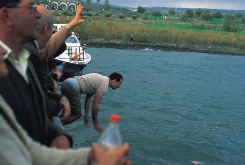 זה היה יומו הגדול של הנזיר אירינָחוֹש. אמנם היו נקודות ציון רבות בסיפור חייו הפתלתל, שהובילו מילדות בכפר הקטן פו פאס (Fou Fas) שבצפון יוון אל הגלימה השחורה של הנזירות האורתודוקסית ואל חופי הכנרת, אבל יום קידוש המים זוהר בלוח השנה של חייו. והוא, שהטיל על עצמו את המשימה, זהר ביומו הגדול. לא עובר יום במהלך השנה שאירינחוש לא חושב על יום קידוש המים. כשהוא עובד בגינתו הענקית, בביקוריו בכנסיות האורתודוקסיות בצפון הארץ, בקשריו ההדוקים עם הקהילה שבחסותו – תמיד יתכונן אירינחוש ליום הגדול. היום שבו הוא, שנשלח על ידי ראשי הכנסייה לחיות לבדו בפיסת האלוהים הנקראת כפר נחום, מארח יותר מאלף בני קהילה, נזירים כמוהו, מכל רחבי הארץ, ובראשם המטרופוליטן של נצרת, המקביל לארכיבישוף בכנסייה המזרחית וראש הכנסייה היוונית אורתודוקסית בצפון הארץ, קירייֶקוֹס המכובד בעצמו, שעוטה למען ישוע – ואולי גם קצת למען אירינחוש – את גלימת הזהב שלו, שהגיעה היישר מיוון.יום התגלות האל הכל התחיל עם הפיצול באימפריה הרומית בסוף המאה השלישית לספירה, שהוביל לשלטון הביזנטי על ארץ הקודש (בין 395 ל־640 לספירה), ימים שבהם מנזרי הכנסייה היוונית אורתודוקסית שקקו חיים ברחבי ארצנו, ומאות נזירים ציננו את עצמם במי הכנרת  | בכפר נחום שוב חוגגים את יום התגלות האלוהים. אחד מהמתפללים מזנק אל המים ומושיע את הצלב מן הקור |
