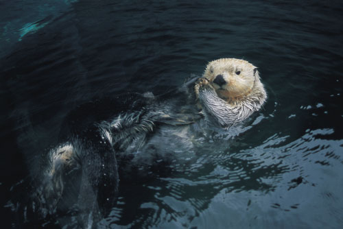 יכולים לקפל את רגליהם, ללכת על היבשה ולשאת את משקלם, ויש להם אפרכסות אוזניים, החסרות אצל כלבי הים. אלה הם חיות הקרקס הידועות, המסוגלות לטפס על מדרגות, לנוע עם כדור מאוזן בקצה חוטמן, להתגלגל בתנועת בורג מבלי להפיל את הכדור ולמחוא כפיים. ארי הים הקליפורני (Zalophus californianus), ששורותיו הידלדלו בשל הציד חסר המעצורים, השתקם, וכיום מעריכים את אוכלוסייתו ביותר מ־300 אלף פרטים. כלבי הים אינם מסוגלים לקפל את רגליהם האחוריות קדימה, והן נותרות משוכות לאחור כסנפירי צוללן. רגליהם הקדמיות תומכות בקושי בגופם. על היבשה הם נראים כנאד עור נפוח עם עיניים. לעומת זאת, הם שחיינים מצוינים, אקרובטי צלילה מעולים ומחליקי קרח זריזים. גמישותם המרשימה נובעת מכך שאין להם עצמות שכמה, והם מסוגלים לסובב ראשם אחורה ולהביט לעבר זנבם. במים מעניקה גמישות זו יכולת תמרון ואפשרות לבצע סלטות מרהיבות. בלוני החמצן של אלוף הצלילה המין הגדול ביותר של כלבי הים של קליפורניה הוא פיל הים הצפוני (Mirounga angustirostris), שאורכו מגיע לשישה מטרים ומשקלו – לשלושה טונות. שמו ניתן לו בשל החדק התלוי מעל לחוטמו של הזכר. אורך החדק כ־40 סנטימטר, והוא פועל כתיבת תהודה כאשר הזכר שואג. הנקבות קטנות בהרבה, וגודלן כמחצית עד שליש ממידות הזכר. לפילי הים, כשאר כלבי הים, אורח חיים אמפיבי. הם נהנים משני העולמות –  | לוטרת הים במפרץ מונטריי. פרוותה של הלוטרה היא הצפופה ביותר בעולם החי – כ-160 אלף שערות בסנטימטר רבוע – ולכן היה לה ביקוש עצום, שהביא אותה לסף הכחדה. ממאות אלפים שרד גרעין קטן, שהיה בסיס לשיקום המין | צילום: חיים קרופך |