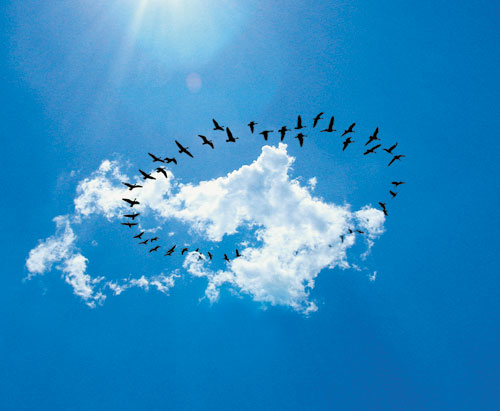 להק ציפורים. הציפורים עפות במבנה המאפשר זרימה חלקה יותר של האוויר ופחות חיכוך | צילום: אימג'בנק ישראל |