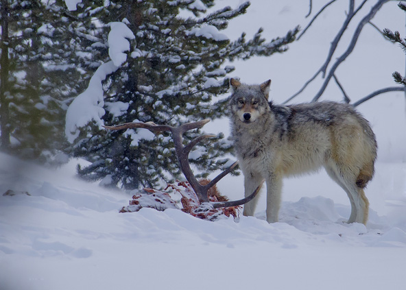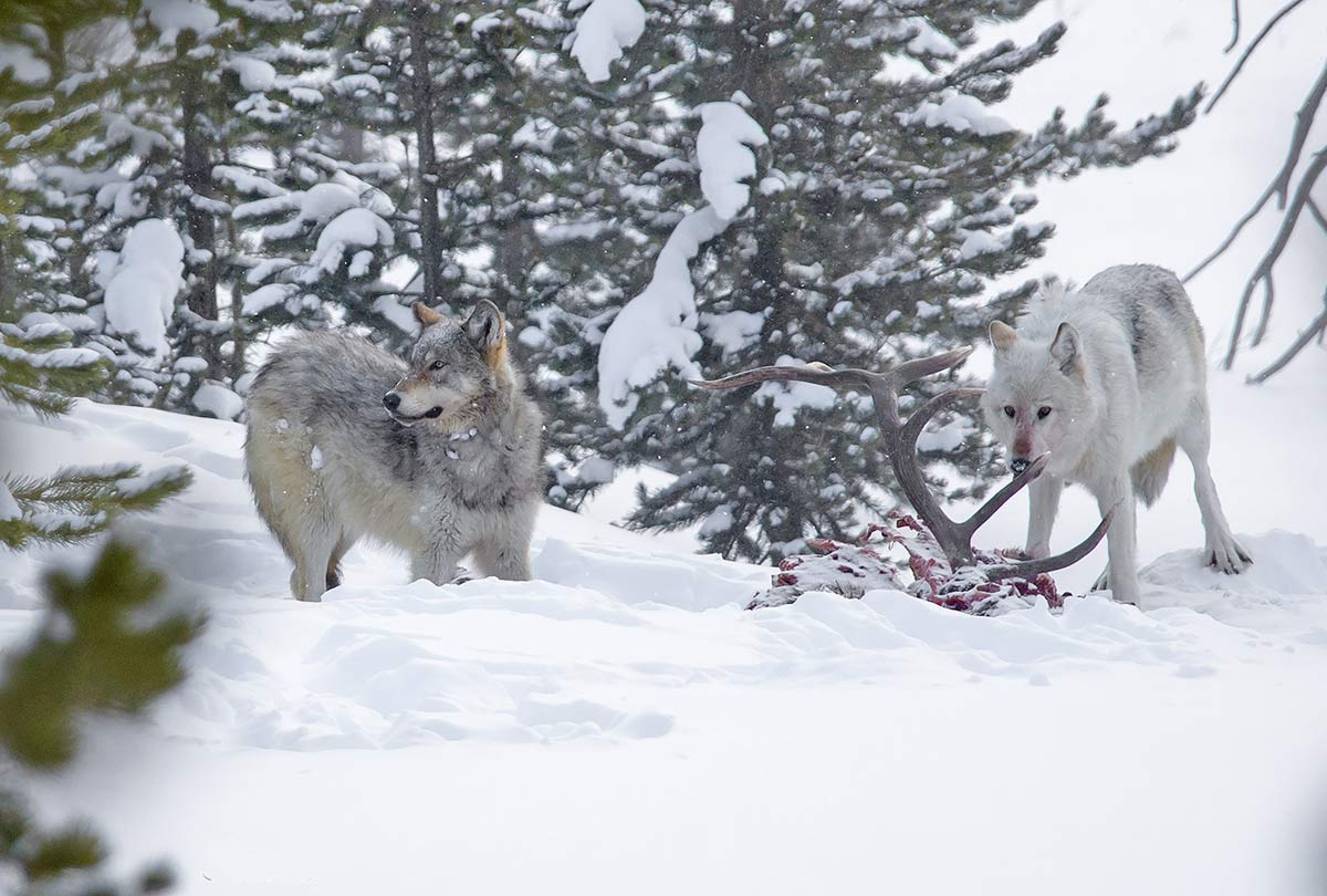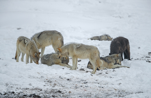 למשל, כשגילינו פגר של אייל קנדי (Elk) יום קודם, ידענו שזה המקום להמתין לכל אלו שמזונם הוא בשרו של האייל. וכך מצאתי את עצמי בחוויה חד פעמית צופה במשפחת זאבים שהגיעו לסעודת מלכים. כמה מהזאבים הטמינו חתיכת בשר במקום מרוחק, כדי לחזור מאוחר יותר ולסעוד בשקט ובבטחה.
