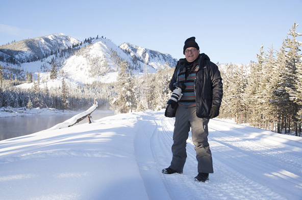 הצלם שלמה ולדמן לבוש ומצויד היטב לעוד יום צילום ברחבי ילוסטון