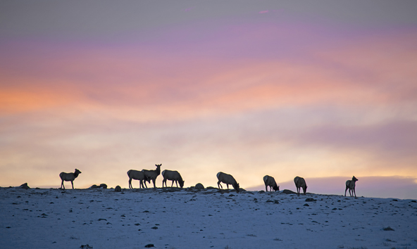 סיור הצילום שלי התרכז יותר בחיות ובטבע ופחות בגייזרים ובברכות התרמיות. בילוסטון קל מאוד לראות למרחקים את הגייזרים, המפלים והברכות החמות – כולם מעלים קיטור בחורף. לעומת זאת, בחיות קשה מאוד לצפות וחייבים להיערך בהתאם ולהסתתר היטב כדי שהן לא יסתלקו כשיחושו סכנה. לכן, יצאתי לצלם השכם בבוקר (או יותר נכון בסופו של הלילה הקודם) על מנת להגיע בזמן ולהספיק להסתוות במקום שבו צפויים להגיע בעלי חיים.