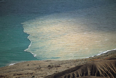 ממשיך לרדת: מפלס ים המלח בין המצוק לים משתרעת רצועת חוף ים המלח: משטח מפולס, לעתים צר עד כדי מאתיים מטר ולעתים רחב עד כדי קילומטרים אחדים. משטחי סריר (מרבדים של סחף וחלוקי נחל) מכסים את מרבית שטחו של החוף. את שפעת הסחף והחלוקים מביאים שטפונות החורף מקניוני הנחלים, וכאן, בחוף, הם מרבידים אותם לכדי מניפות סחף ענקיות. בשנים האחרונות נוספה לרצועת החלוקים של החוף רצועה של בוץ שחרחר, טובעני בחלקו. הרצועה הזאת הולכת ומתרחבת מדי שנה, ככל שנסוג קו החוף מזרחה: מטר אחד מאבד ים המלח מדי שנה ממפלסו, ושום מפה טופוגרפית, עדכנית ככל שתהיה, לא תיתן כבר נתון מדויק באשר למפלס הים. קצב הבריחה של קו החוף מזרחה מן המצוק הוא מדהים: מונח לפני צילום שחור-לבן קטן מחודש דצמבר 1967, אז עשינו את המסע הראשון מעין פשחה לעין גדי, משחזרים קטע מהמסע הארוך של פלוגות הפלמ"ח ב-1944, שיצאו מרמת רחל לעין פשחה ומשם למצדה, סדום, המכתש הקטן, המכתש הגדול ורביבים. 14 ימי מסע עם "כל הבית" על הגב. בתמונה אנחנו נראים, שלושה צעירים, עם הידיים מורמות מעל לראש, תומכות בתרמיל גב וחבילת בגדים, טובלים עד מעל לטבור בתוך מי הים, ולימיננו יורד הקיר האנכי של ראס פשחה (ראש צוקים) היישר למים העמוקים. מאז אותו מסע ירדו פני ים המלח ב-35 מטר. כשיורד מפלס הים יורד בעקבותיו מפלס המים המתוקים של המעיינות הנובעים לרגלי המצוקים. והטבע לא מרחם ולא סולח: מכתשים גדולים, שקיבלו את השם המפחיד (ובצדק) "בולענים", נפערים בחוץ כתוצאה מהתמוטטות ושקיעת פני הקרקע המלוחים, וקטעי חוף גדולים בין עין גדי ובמצפה שלם כבר נסגרו בפני מטיילים, כי סכנת מוות בהם. כיום מאיימים על העושר הנופי והארכיאולוגי הזה של מצוקי המדבר וחוף ים המלח שני תהליכים פוגעניים: ים המלח ההולך ומתכווץ ומפעלי ים המלח המכרסמים את סביבתו הטבעית של האגן הדרומי של הים. הלב מתכווץ מן המחשבה שיום אחד ייעלם הים לחלוטין, ואז כבר לעולם לא ישוב לצורתו המקורית הנוף הזה, שאין שני לו בעולם.