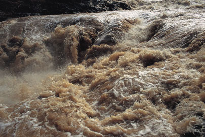 | | שיטפון בנחל דרגה. גל השיטפון מתחיל בדרך כלל בהרי חברון, ממשיך בנחלים לעבר שפתו של מצוק ההעתקים האדיר, וממנו צונח צניחה אנכית של 500 מטר ויותר אל ים המלח שמתחת | צילום: אייל ברטוב |