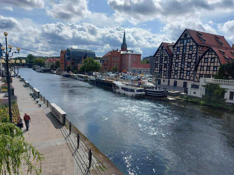 פתחו את הביקור בהליכה נינוחה לאורך תעלת בידגושץ', תעלת מים שנבנתה במאה ה-18 כדי לקשר בין הנהרות ויסלה וברדה. על גדת התעלה יש טיילת נחמדה, שהמקומיים נוהגים ללכת, לרוץ או לרכוב לאורכה באופניים, ואתם יכולים להצטרף אליהם. בידגושץ' התברכה בתעלות נוספות ובנהר הזורם במרכזה. הליכה לצד הנהר מגלה גשרים ציוריים, פסלים מעניינים, צריחי כנסיות ומחסנים ישנים שהפכו למרכזי תרבות, מסעדות או מועדונים.