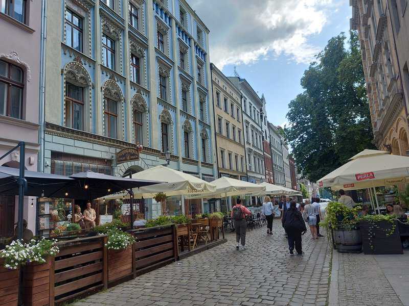 באי יש גם כמה מסעדות ובתי קפה שמשקיפים אל המים. באחד מהם, קפה וודה ("מים" בפולנית), אפשר להוסיף עוד כמה מאות (אלפי?) קלוריות לתפריט היומי עם קרפטקה, עוגת שמנת פולנית, שמזכירה את הנפוליאון הצרפתית (כתובת: Mennica 10).