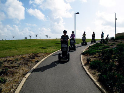 המחשבה לראות את תל אביב-יפו על שני גלגלים קצת הפחידה אותי. קצת? טוב, הפחידה אותי מאוד. מה יהיה אם אתרסק על הטיילת מול נופי ים מפעימים ותיירים משתאים? עמדנו, קבוצה של שבעה חברים, בנמל יפו, מקשיבים לצביקה גולן, המדריך החביב והידען מחברת סיורי סגווי בע"מ SEGS (שכמו כל מדריכי החברה, גם הוא מורה דרך מוסמך) מסביר איך מפעילים את הסגווי, מדגים סיבובים, עצירות, עליות וירידות. חבשתי את הקסדה והקשבתי, להקשיב הרי לא הזיק לאף אחד. ואז הגיע הזמן לעלות על הסגווי ולהתחיל לתרגל את הפעלתו. אני עולה רק לשנייה, אמרתי לעצמי, הרי ברור שזה לא בשבילי. עליתי. נשענתי קדימה והסגווי התחיל לנוע קדימה, תרגלתי סיבוב לימין וסיבוב לשמאל, עצירה, נסיעה לאחור, עמידה במקום ושוב נסיעה קדימה. לא רק שהבנתי שהסגווי הוא בשבילי, פשוט לא רציתי לרדת – לא עכשיו ולא אי פעם…