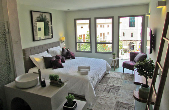 במלון מרגוזה יש 35 חדרים נוחים ונעימים, עם מיטות איכותיות במיוחד, טלוויזיה חכמה שמאפשרת לצפות בערוצי טלוויזיה, להאזין לתחנות רדיו, להתחבר לכמה ערוצי אינטרנט ולקבל מידע עדכני על מזג האוויר וכדומה. עוד בחדר – ערכת קפה, מיני מקרר, כספת המתאימה למחשב נייד, ובחדר המקלחת יש ראש מקלחת זוגי. לכל חדר יש מרפסת המשקיפה על שוק הפשפשים ויפו העתיקה. בכל רחבי המלון יש אינטרנט אלחוטי חינם. וכשרוצים לצאת מהחדר, כל אפשרויות הבילוי והטיול ביפו נמצאות ממש מולכם – משוק הפשפשים, שאפשר למצוא בו כל מה שחשקה נפשכם (וגם מה שלא ידעתם שתרצו), לצד בתי קפה ומסעדות מיוחדות והרבה מוזיקה והתרחשות לילית, דרך סמטאות יפו העתיקה עם הגלריות ובתי האבן היפהפיים ועד לנמל המתחדש, שיש בו אפשרויות אוכל ובילוי מרובות. חדר במלון מרגוזה. בכל חדר יש מרפסת צמודה ממנה נשקף נוף עירוני מלבב