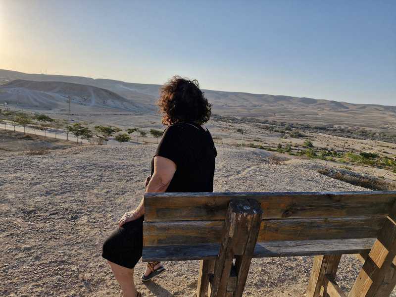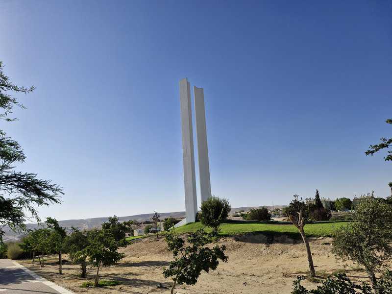 אנחנו יושבים במרכז ירוחם, למרגלות הפסל המרשים של עזרא אוריון. הפסל, שנקרא זהות, נבנה על הגבעה שבה הכל התחיל – המקום של המעברה הראשונה. שני עמודים לבנים, המזדקרים אל על על רקע השמיים הכחולים, מסמלים את החיבור בין חדש לישן, בין מזרח למערב.
