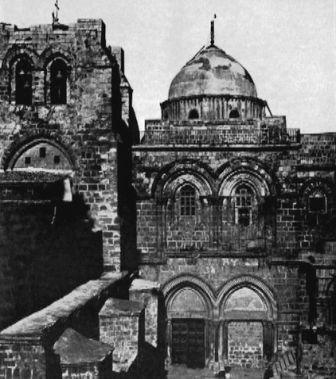 כדי להיכנס לכנסיית הקבר (או כפי שאחרים מכנים אותה "כנסיית התחייה") יש לחצות את הרחבה בין מסגד עומר והכנסיות הקטנות של הארמנים והאתיופים, לכיוון דרום, ומשם נכנסים דרך השערים הצלבניים המעוטרים אל מול אבן המשיחה. אבל לא רבים יודעים כי הכניסה המקורית לכנסיית הקבר הייתה דווקא מצד מזרח. ככלל, כנסיות פונות לכיוון מזרח, כנגד השמש העולה, על מנת להקל על הפגאנים את המעבר לאמונה המונותיאיסטית. כלומר, הכניסה למרבית הכנסיות בעולם הנה ממערב. אבל כמו בכל כלל, כאן יש יוצאים מהכלל. כך, למשל, כנסיית סנט פטרוס ביפו פונה לכיוון מערב, כדי לסמן את יציאת הנצרות אל העמים שמעבר לים. גם הכנסייה החשובה בעולם, הלא היא כנסיית הקבר, נבנתה במקור כשהכניסה אליה היתה הפוכה, כלומר ממזרח למערב. הצליין היה פוגש בכניסתו את מקום הצליבה (הגולגולתא), ממשיך לחצר פתוחה, ומשם עובר מערבה אל הרוטונדה, מקום הקבורה והתחייה. את הכניסה ממזרח אנו מזהים כיום ברחוב בית הבד (ח'אן א-זית), בחנות המתוקים של זלטימו. בחלקו הצפוני ובצדו המזרחי של רחוב הנוצרים אפשר לראות קטע של שער אטום בלבנים, התוחם את כנסיית הקבר ממערב. אין ספק שהשער הזה הוא צלבני, והיה חלק מתוכנית הבנייה הכללית של השערים הדרומיים המפוארים ומגדל הפעמון. על כך מעידים ה"כריות", חידוד הקשת והשתלבותו של השער במבנה הכללי. מיקומו מצביע בבירור כי זהו שער כניסה למכלול הפטריארך, שהיה בחלק הצפוני של הכנסייה. כיום זהו מתחם מסגד אלחאנקה, שהוסב על ידי צלאח א-דין לאחר כיבוש ירושלים ב-1187 למקום מגורי נזירים סופיים.