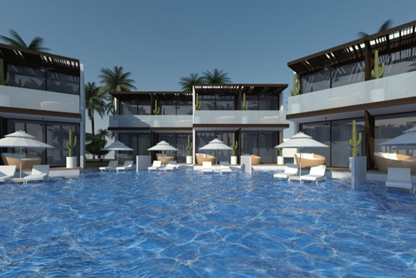 הבריכה של המלון החדש שייבנה על רצועת חוף פרטית בים המלח