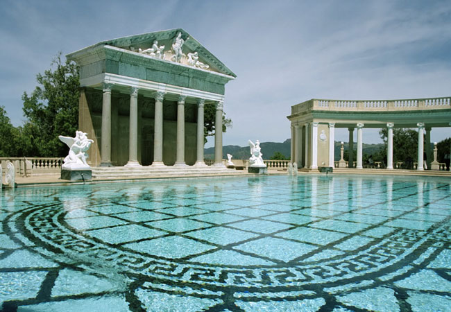 הביקור בכל אחת מהן נמשך שעה קלה, אבל העצירה מומלצת בשביל למתוח רגליים, לשחרר אנרגיות (בעיקר בקרב הדור הצעיר) ולצאת להפסקת אוכל ושתייה. סנטה ברברה (Santa Barbara) עיירת נופש חביבה. אנחנו טיילנו על מזח העץ וראינו את המיסיון של סנטה ברברה, אחד מכמה מיסיונים ספרדיים, שנבנו בראשית ההתיישבות הספרדית בקליפורניה מתוך מטרה להפיץ את הנצרות בקרב "הילידים". סולוונג (Solvang) בעיירה שהוקמה ב-1911 על ידי מתיישבים דנים, נראים כל הבניינים כאילו הביאו אותם היישר מדנמרק, כולל 3 טחנות רוח ומוזיאון קטנטן של הנס כריסטיאן אנדרסן, שממוקם מעל חנות ספרים. בשלב מסוים הופתענו שהאנשים שם מדברים אנגלית ולא דנית… אנחנו נהנינו בעיקר מהמאפיות, שבהן מוכרים עוגיוות דניש טעימות. סן לואי אוביספו (San Luis Obispo) עיירה נעימה ורגועה. כנסיית המיסיון מעוטרת בציורי קיר נאיבים של פרחים וציפורים. מפרץ מורו (Morro Bay) המפגש הראשון שלנו עם החוף הקליפורני המדהים של כביש מספר 1. הצוק הענק שבולט כחצי אי מתוך הים משך אותנו אליו מייד. כאן נגלה לעיננו העושר של חיי הבר של האזור: השקנאי החום, שהצוק משמש לו כשמורה, סנאי אדמה שמנסים לגנוב אוכל בכל רגע אפשרי והיונקים הימיים הגדולים: כלבי הים ואריות הים הקליפורניים. כאן גם גילו הילדים את החיה שהפכה לסמל של הטיול שלנו: לוטרת הים (Sea Otter). זהו יונק חמוד למראה, שנוהג לשכב על גבו במים ולפצח צדפות על גבי אבן שהוא מחזיק על בטנו. במקום רציף תיירותי עם מסעדות, אך אנחנו העדפנו לעשות פיקניק (יש שולחנות פיקניק בקרבת הצוק). פיקניק עם ילדים הוא תמיד חוויה חיובית ומהנה במיוחד, כי כך ניתן לקנות מראש בדיוק מה שהילדים אוהבים, בלי הצורך להסתבך במסעדה עם מאכלים שהילדים מסרבים לאכול. במקום חוף רחצה. טיפים: כדאי להביא משקפת. השורה התחתונה: מומלץ בחום. www.morrobay.org ארמון הרסט (Hearst Castle) אם באירופה נהוג לבקר בארמונות של מלכים ואצילים, בקליפורניה ניתן לבקר בארמון של האצולה החדשה, אצולת ההון. בארמון עצום המימדים והצעקני, שבנה איל העיתונות ווילאם רנדולף הרסט, ניתן לראות כמה חשוב היה לו להיראות כמו "האצולה הישנה". בריכה עם פסלי שיש, חדרי אוכל מפוארים ואולם הקרנת סרטים פרטי הם רק חלק ממה שנגלה לעיני המבקרים במקום. חבל שניתן לבקר במקום רק בסיור מודרך שנמשך שעתיים, כי בשלב מסוים הילדים משתעממים. השורה התחתונה: לאוהבי ארמונות. www.hearstcastle.com  | | טירת הרסט. ארמון של האצולה החדשה | צילום: סימון גורני |