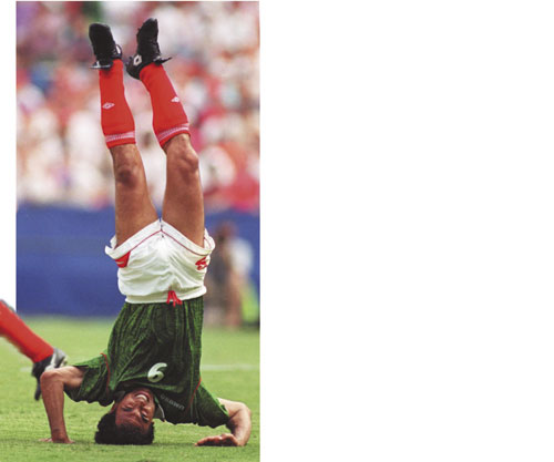 הכדורגל במקסיקו הוא שואו במלוא מובן המלה. בליגה הזו צמחו טיפוסים כמו קווטמוק בלאנקו, הקשר שהמציא את הטריק של דילוג מעבר לשחקן יריב עם הכדור אחוז בין הרגליים, או השוער חורחה קאמפוס, שהתפרסם בתלבושות הצבעוניות שלו ובמשחקים שבהם נטש את השער כדי לשחק כחלוץ בהתקפה. לכל קבוצה יש צבא אדיר של אוהדים שמעודדים על פי מיטב המסורת הלטינית, והם שהמציאו את ה"הולה", "הגל המקסיקני" שהעולם כולו חזה בו במונדיאל 86' – אותו מחזה מרהיב שנוצר כשהאוהדים קמים ממקומם לרגע אחד לפי מיקומם ביציעים ויוצרים מעין גל אנושי מסביב למגרש. בלי תחרות של ממש שורשי משחק הכדור במקסיקו קדומים מאוד. משחק הכדור הראשון בעולם שבו משחקות שתי קבוצות בכדור גומי הומצא באמריקה המרכזית לפני כ־4,000 שנה. השבטים המקומיים שיחקו בכדור כחובבים וכמקצוענים למטרות בידור ופולחן, והמשחק נחשב לאבטיפוס של משחק הכדורסל המודרני את הכדורגל המודרני הביאו למדינה בסוף המאה ה־19 עובדי מכרות ורכבות בריטים. אליפות הכדורגל הראשונה התקיימה ב־1902 במקסיקו סיטי בהשתתפות חמש קבוצות, שלוש מהן בריטיות. במקביל הוקמו ליגות מחוזיות גם בגוודלחרה (Guadalajara) ובוורקרוס (Veracruz). הליגה המקצוענית הוקמה ב־1943, ובפעם הראשונה שיחקו בה קבוצות מכל חלקי המדינה. מקסיקו לא נחשבת למעצמת כדורגל עולמית, והנבחרת הלאומית שלה לא הגיעה מעולם להישגים יוצאי דופן. הבעיה הגדולה של הכדורגל המקסיקני במשך השנים היתה העובדה שהוא נכלל במסגרת ההתאחדות של אמריקה הצפונית והמרכזית, מה שאומר אמנם עלייה (כמעט) בטוחה למונדיאל כל ארבע שנים אבל מחסור חמור בתחרות של ממש. יריבות כמו האיטי, קנדה, אל סלוודור וארצות הברית (לפחות עד לפני כעשור) לא הצליחו בדרך כלל לדגדג את נבחרת הטריקולור, הכינוי של נבחרת מקסיקו, בגלל הדגל כמובן. אמנם הנבחרת לא היתה צריכה להתאמץ במיוחד כדי לנצח, אבל היא נותרה בבינוניות שלה. כשהתייצבה לבסוף מול הנבחרות החזקות מאירופה ואמריקה הדרומית, זה הסתיים  | הוגו סאנצ'ס, גדול הכדורגלנים המקסיקנים, במדי הנבחרת. בעבר היה כוכב גדול באירופה, היום הוא המאמן של אונא"ם צילום: אימאג' בנק. |