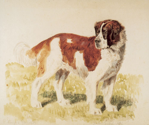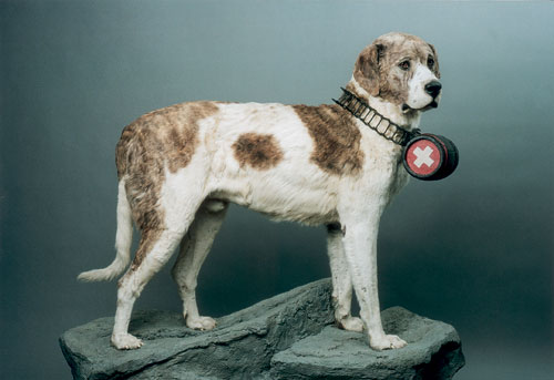 מקלט לאובדי דרך ראשיתו של המנזר, הנטוע בגובה 2,472 מטרים מעל פני הים, בברנרד ממונז'ו (Montjoux), נזיר שחי מראשית המאה ה־11 במערה בהרי האלפים. לא הרחק מפתח מערתו עברה דרך שבנה הקיסר אוגוסטוס בשנת 12 לפני הספירה. הדרך הובילה אל מעבר גבוה בהרים וירדה מעברם השני אל עמק הרון. במשך מאות שנים היתה זו הדרך המרכזית לחצות את ההרים ולחבר את הארצות שמשני צדיהם. מזג האוויר באיזור סוער, וסופות קשות מכות בהרים גם בקיץ. מאוקטובר עד יוני מכוסה האיזור הגבוה בשלג והטמפרטורות יורדות עמוק מתחת לאפס, אבל סוחרים, שודדים, עולי רגל לרומא וחיילים השתמשו במעבר למרות הקשיים והסכנות. ההבטחה הטמונה בארץ שמעבר להרים שווה כל מאמץ.  | פוחלץ של בארי הראשון (1800-1814), ראש שושלת מפוארת של כלבי סן ברנרד, שהובילו את הנזירים בזמן סערות, חשפו את נתיב ההליכה מתחת לשלג טרי, סייעו באיתור אנשים שנקברו במפולות ונשאו על צוואריהם אוכל ושתייה חמה לניצולים | צילום: Musee d'Histoire naturelle, Berne © |