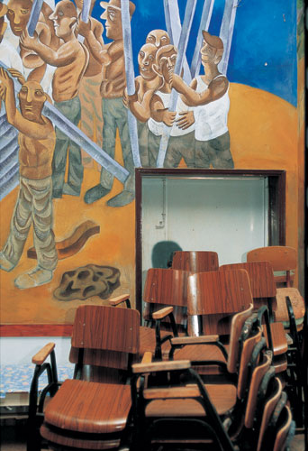 הניגוד בין מצבו העגום של בית העם ובין ציור הקיר ההירואי המשתרע על פני שלושה קירות יוצר מראה הזוי. בית העם, פעם מרכז תרבותי וחברתי, נמצא כיום שומם ונטוש ועומד ליהפך לחורבה. סורגי הברזל בכניסה ובחלונות כבר מזמן החלידו. חשמל ומים אין, ורק ערימה של כיסאות ישנים מעידה על כך שהמקום משמש לעתים אכסניה לפעילויות של תלמידים. רק הצבעים הבוהקים כמעט שלא איבדו מחיוניותם במשך 33 השנים שעברו מאז נמשחו על הקיר.