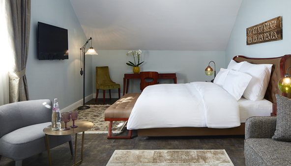 חדר גרנד בקומה הרביעית, עם תקרה משופעת ונוף לכרמל ולים